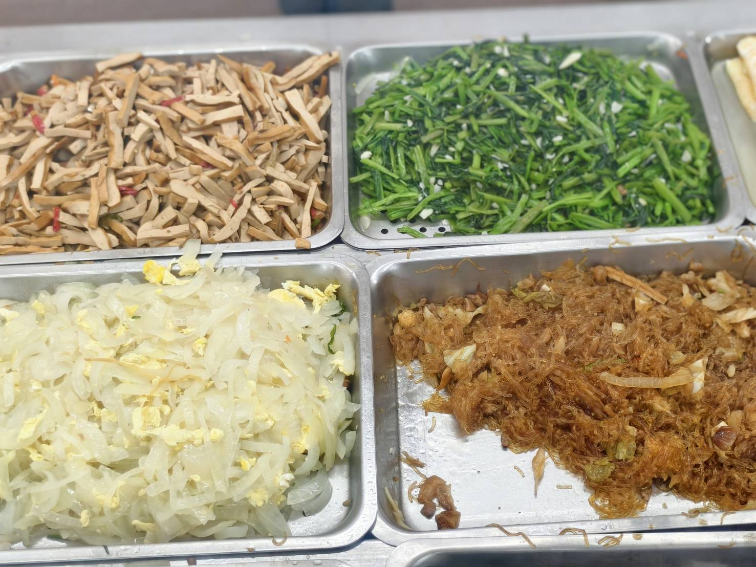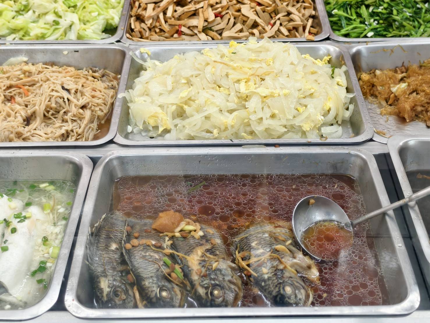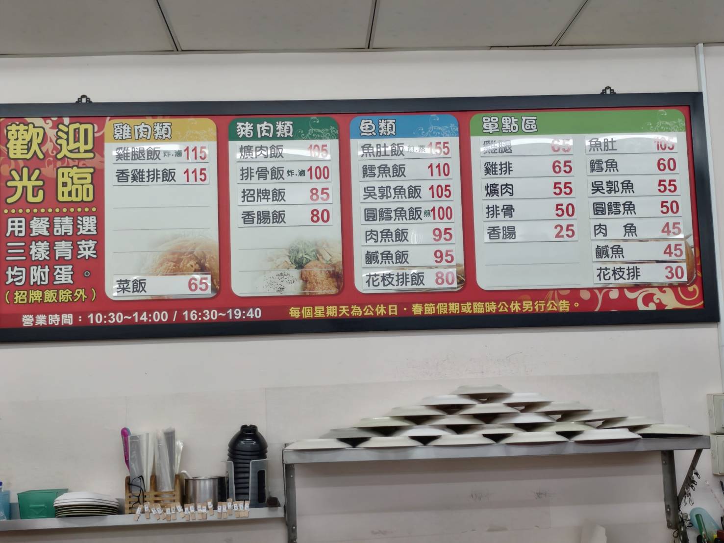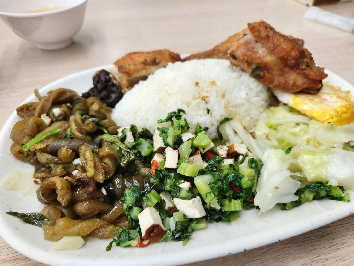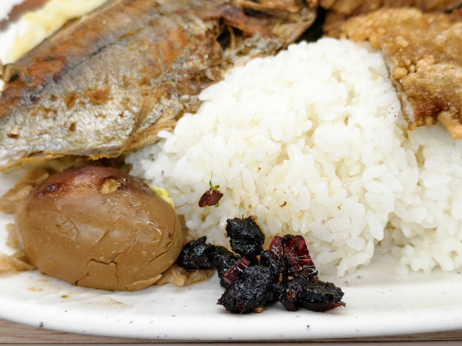排骨雞腿魚肉不油膩、白飯粒粒分明,配菜份量不少,配菜味微淡,加上菜脯辣豆豉,對味下飯剛剛好。