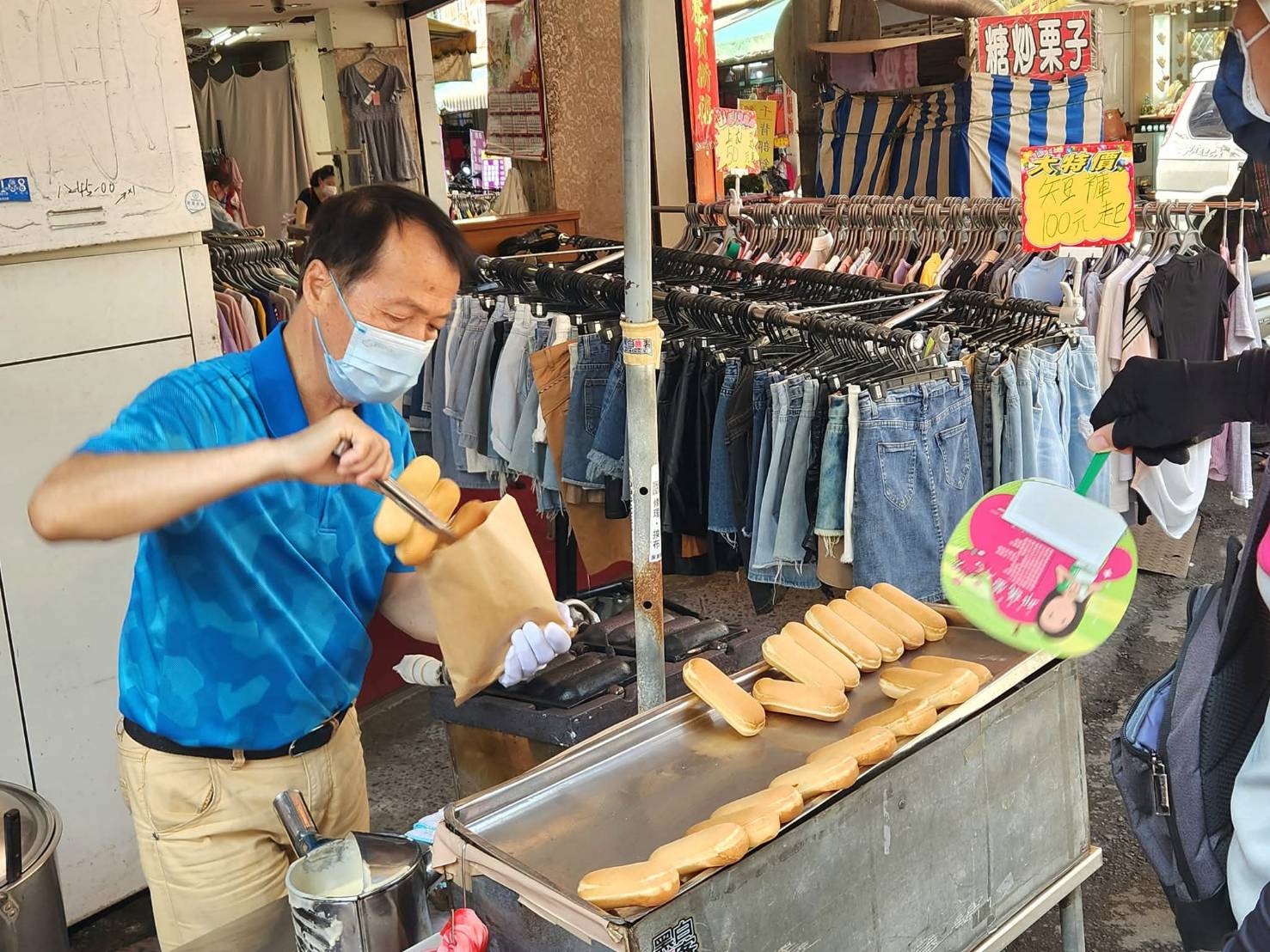 就是這攤古早味雞蛋糕,三個20元,好吃,這是上次買的