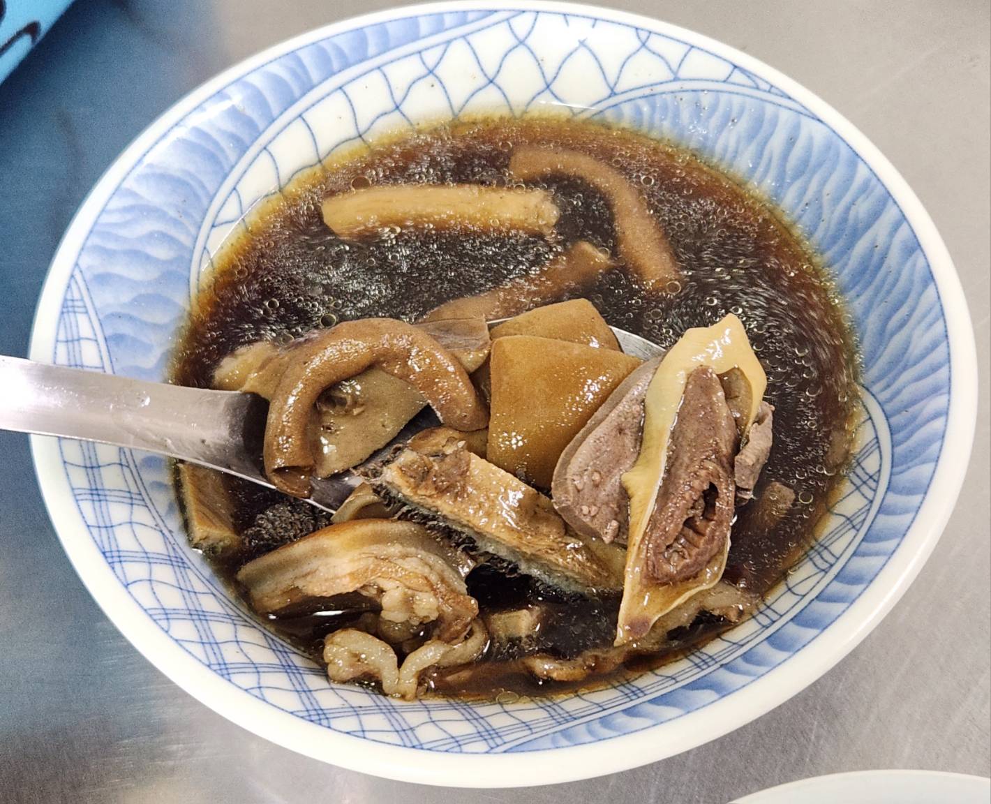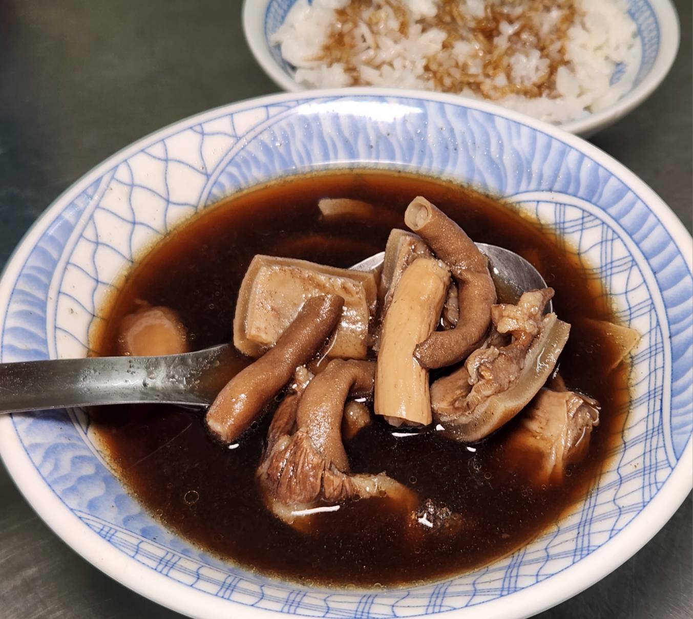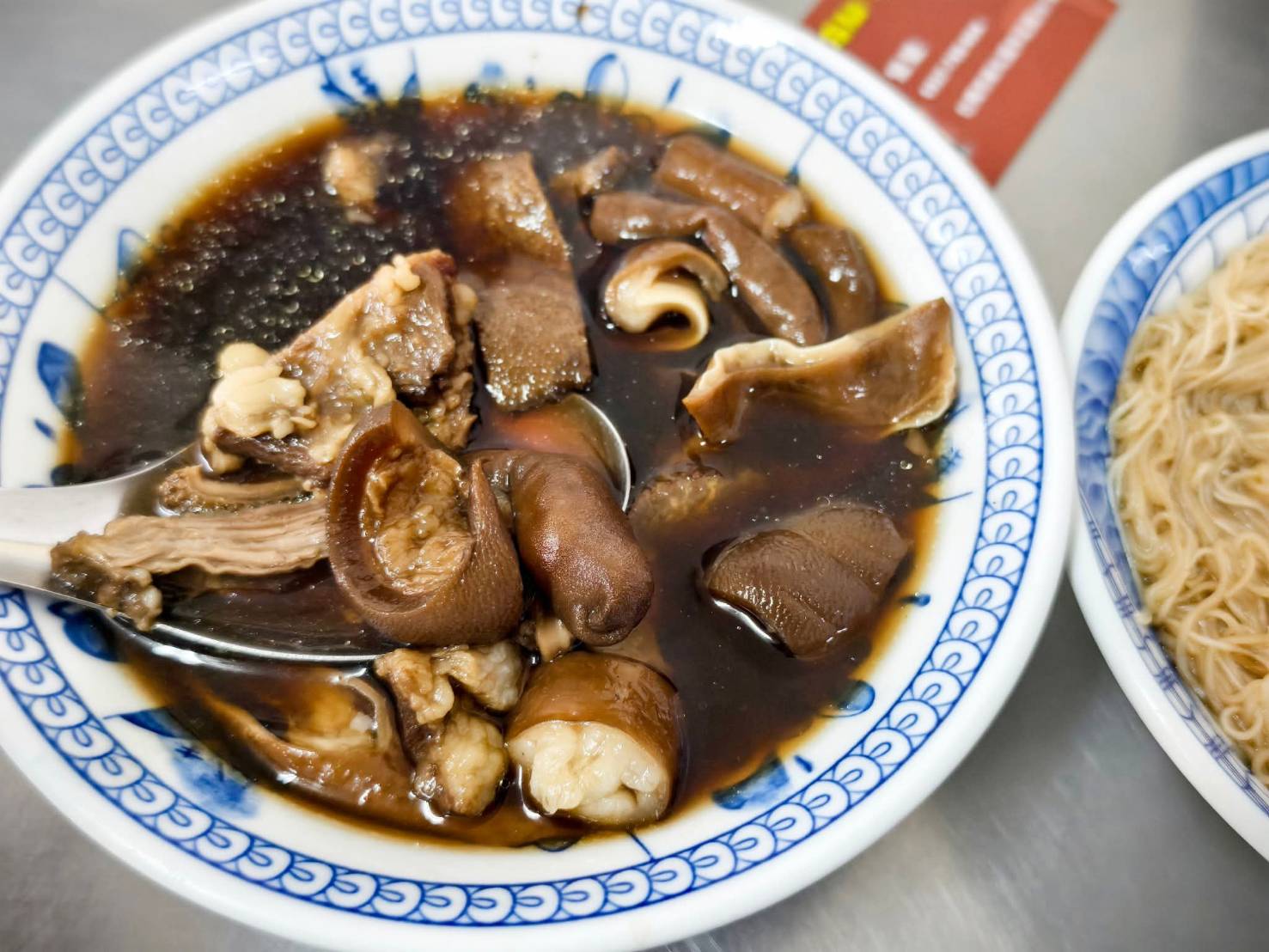 上次點拌飯,這次當然要點羊油麵線,一入口一樣無騷味,也可能因蒜泥加分,再加上麵線口感不爛鹹味淡,說不上來的調味,只知道一口接著一口吃