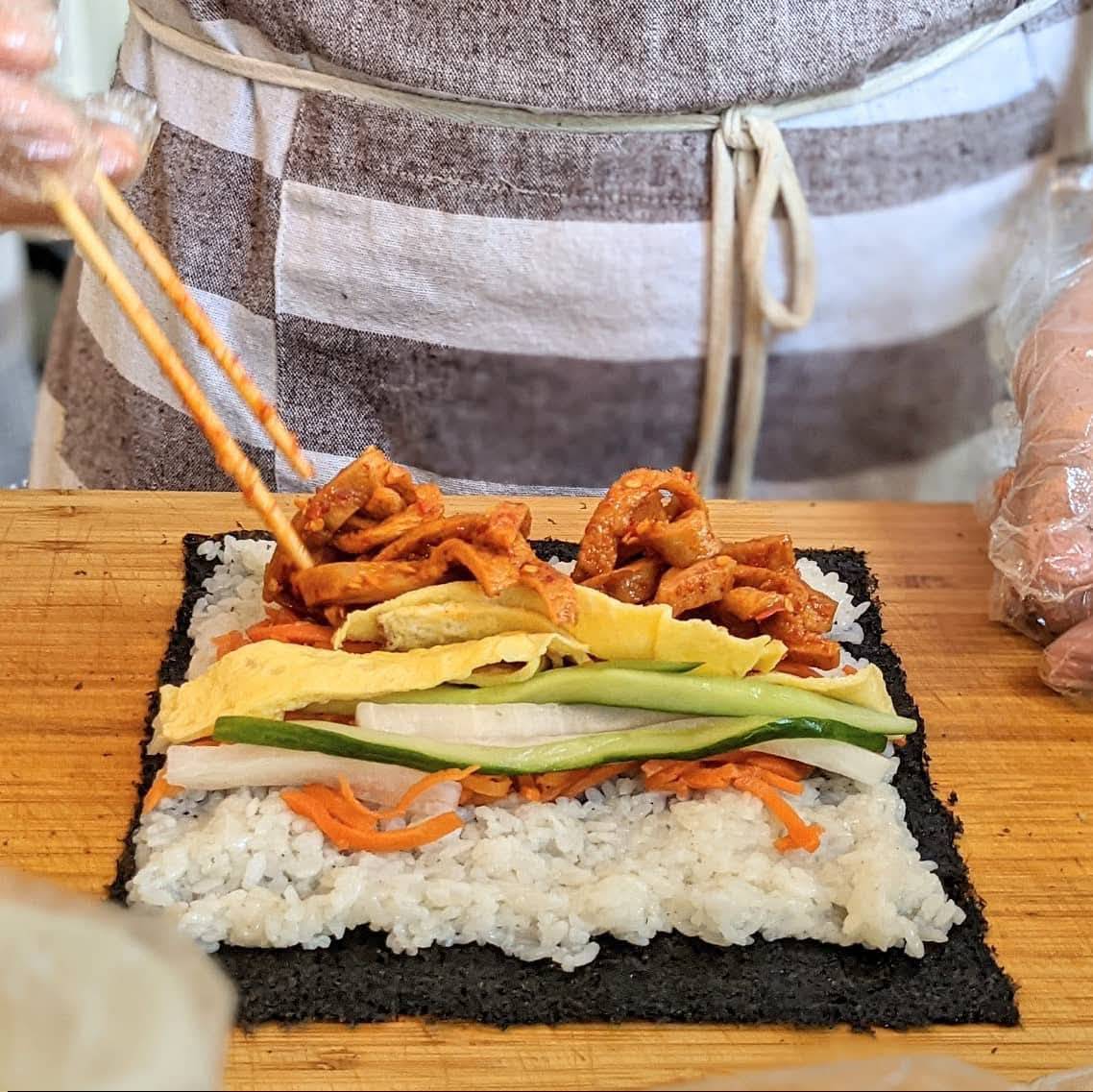 2021年第一次買,老闆說他是嫁來台灣賣韓國飯捲的韓國人。陸續買了幾次,那時60元70元,後來95元。雖然已95元,但生意仍是很好。