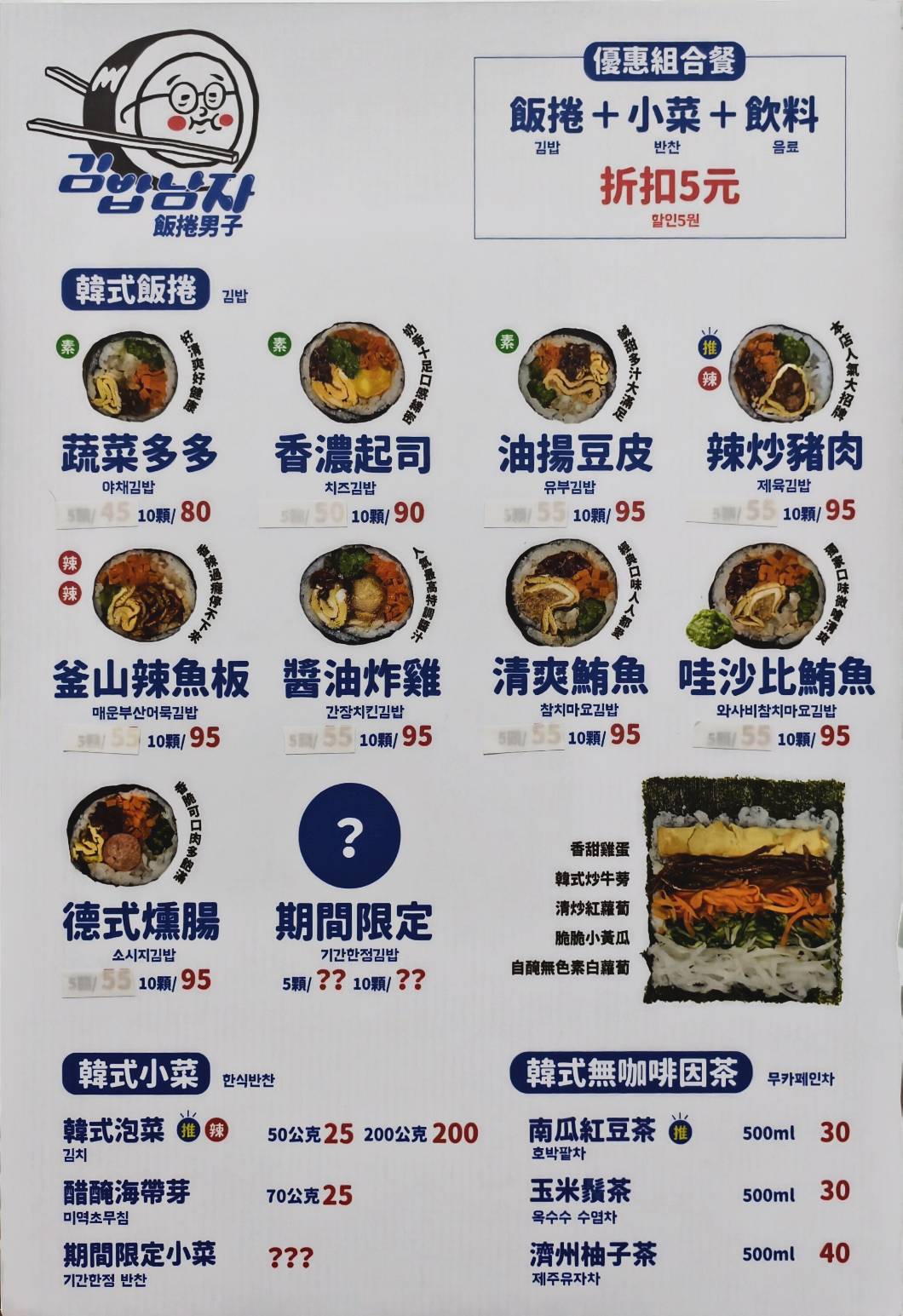 飯捲男子 김밥남자,仁智街上的韓式飯捲,也是苓雅區早餐美食,在仁智街、興中二路、永樂街附近美食小吃非常多,包括早餐午餐當然還有下午茶與晚餐,但如果想吃美味有飽足感的早餐,飯捲男子是不錯的選擇,搭捷運,捷運三多商圈站下車,走路六七分鐘就能到