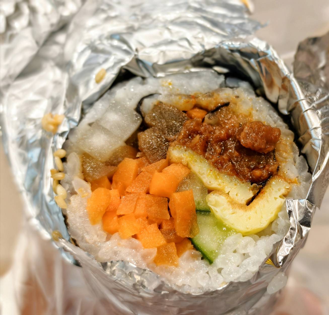 裡面蔬菜有紅蘿蔔、小黃瓜、白蘿蔔、雞蛋,有不喜歡的菜,點餐前告知就不會包進去